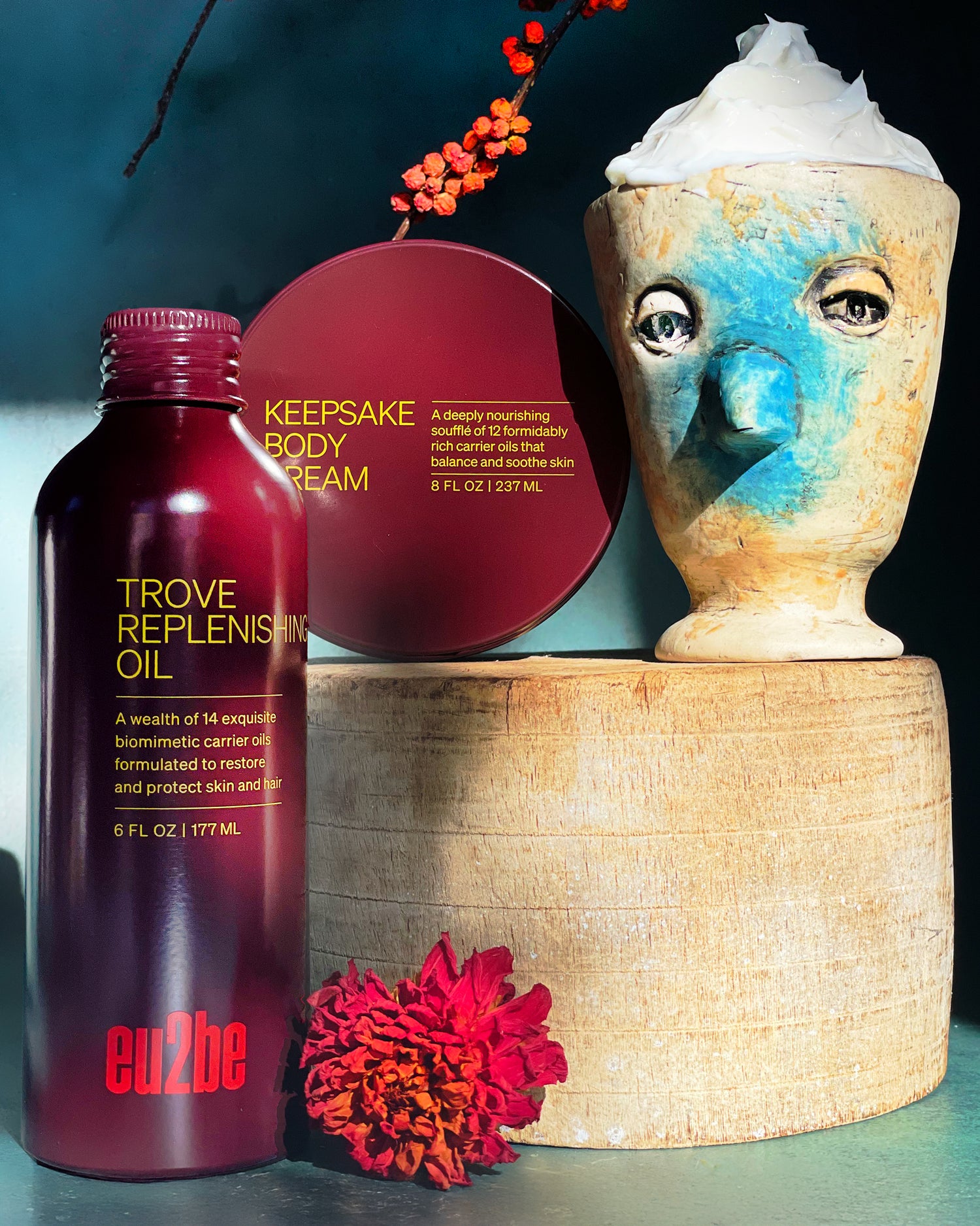 Keepsake Body Cream and Trove Replenishing Oil are formulated exactly for these conditions—and to lessen the appearance of fine lines, spots, and wrinkles with moisture-locking, skin conditioning oils rich in antioxidants, vitamins, minerals, ceramides, and essential fatty acids for radiance you can feel and see.