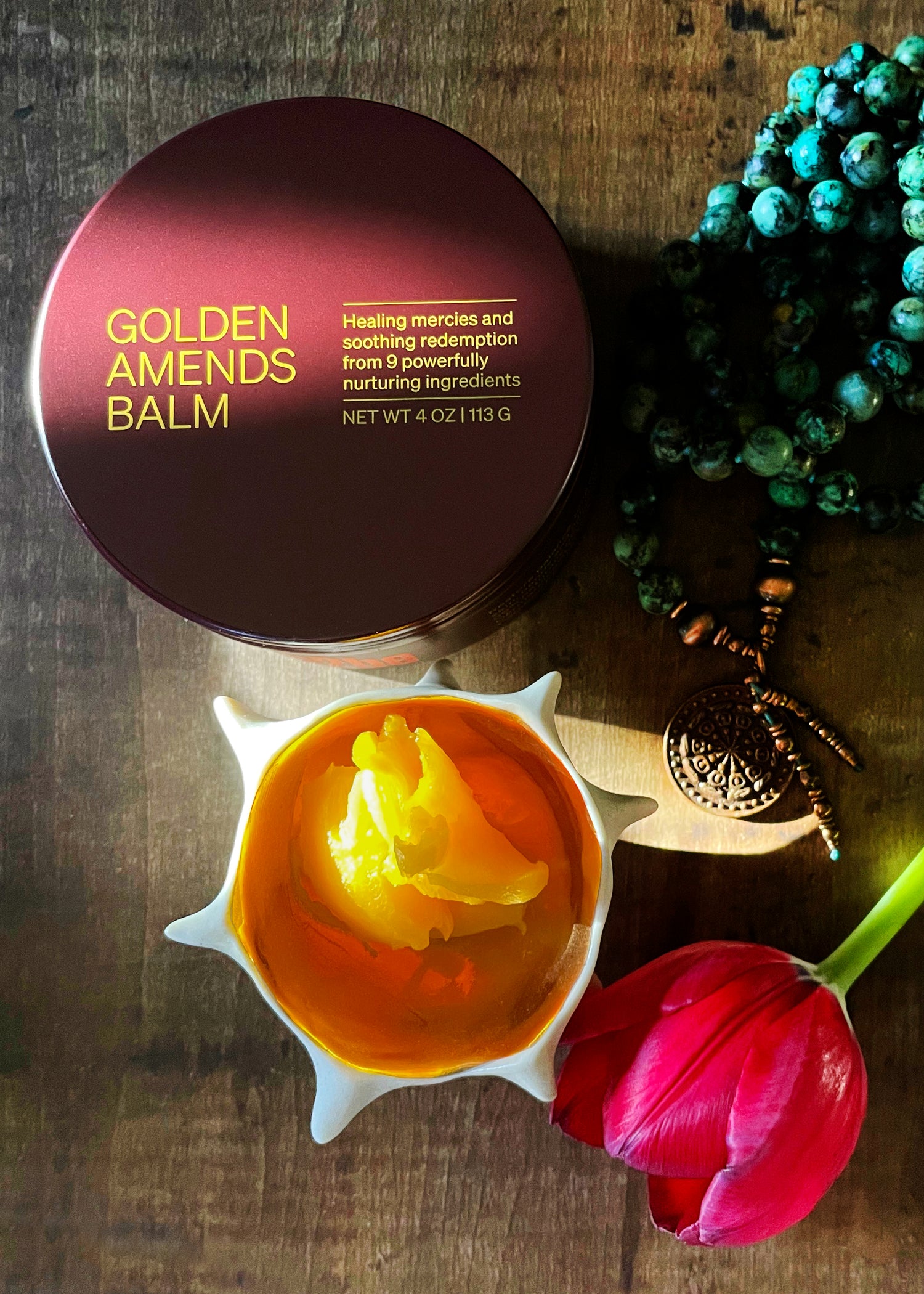 Proven effective humectants, emulsifiers, and biomimetic carrier oils in Golden Amends Balm moisturize and support skin barrier health to protect against dehydrated, sensitive, breakout prone skin.